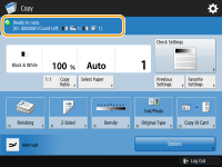 Exibe o status de configuração como a taxa de cópias, o tamanho do papel e o número de cópias. Certifique-se de confirmar as configurações para copiar corretamente. Para alterar as configurações, pressione o botão abaixo da seção de exibição.