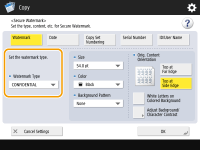 Especifique as configurações de impressão para a marca d'água.