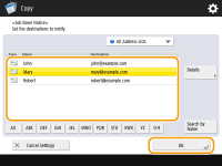 O destino das notificações por e-mail deve ser especificado no Catálogo de endereços. Registre o destino desejado com antecedência. Registrando destinos no Catálogo de endereços |