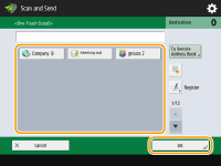 Tela de Recursos básicos de digitalizaçãoEspecificando destinos a partir do Catálogo de endereços