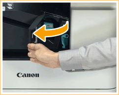 Aperte as marcas de seta no estojo de grampos e remova-o na direção da seta.