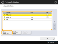 Se desejar usar uma chave e certificado gerado por você mesmo, gere a chave e o certificado antes de realizar o procedimento abaixo. Gerando a chave e o certificado para comunicação da rede Se desejar usar uma chave e certificado adquirido de uma autoridade de certificação (CA), registre a chave e o certificado antes de realizar o procedimento abaixo. Registando uma chave e um certificado Se configurar <Format Encryption Method to FIPS 140-2> como <On>, você poderá fazer com que o método de criptografia TLS da comunicação obedeça ao FIPS (Federal Information Processing Standards) 140-2 aprovado pelo governo dos Estados Unidos. <Format Encryption Method to FIPS 140-2> Se <Format Encryption Method to FIPS 140-2> estiver configurado como <On>, um erro ocorrerá quando você tentar especificar um certificado de TLS que use um algoritmo não reconhecido pelo FIPS (menor do que RSA2048bit). Um erro de comunicação ocorrerá se você configurar <Format Encryption Method to FIPS 140-2> como <On> e enviá-lo a um destino de terceiros que não suporte algoritmos de criptografia reconhecidos pelo FIPS. Se <Format Encryption Method to FIPS 140-2> estiver configurado como <On>, <CHACHA20- POLY1305> e <X25519> alternado para <Off>. Se <CHACHA20- POLY1305> ou <X25519> estiver configurado como <On>, <Format Encryption Method to FIPS 140-2> alterna para <Off>. |