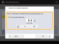 Você pode ajustar o alinhamento de papel durante a saída do papel para a bandeja do finalizador se está usando a unidade opcional Staple Finisher-W PRO/Booklet Finisher-W PRO.