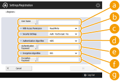 Configure uma combinação de autenticação e codificação. Selecione <Auth. Yes/Encrypt. Yes>, <Auth. Yes/Encrypt. No> ou <Auth. No/Encrypt. No>.