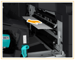 Se houver papel encravado na 2ª área de saída, puxe o papel cuidadosamente na direção da seta.