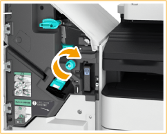 ![]() | Gire a maçaneta verde para alimentar o papel encravado para o lado da bandeja principal. ![]() |