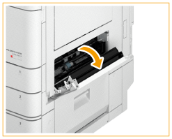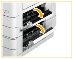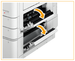 | Abra a tampa superior direita e a tampa inferior direita da gaveta de papel. |