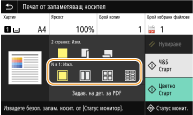 За да комбинирате изображения на девет или 16 страници върху една страница при печат на PDF файл, изберете <Задав. на дет. за PDF>