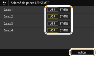 Aquest element és eficaç quan l'opció <Totes les mides> està seleccionada en <Grup mides paper recon.auto a calaix> (Establiment de la mida de detecció automàtica del calaix de paper) i l'opció <Automàtic> està seleccionada en <Mida de paper> (Especificació de la mida i el tipus de paper al calaix de paper).