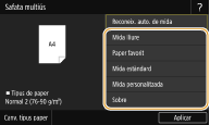 Podeu especificar la mida de paper com a <Mida lliure> per no haver d'introduir les opcions de mida de paper. Especifiqueu <Mida lliure> quan carregueu paper de mida desconeguda per fer-lo servir per a còpies o quan la mida de paper ja estigui registrada al controlador d'impressora.
