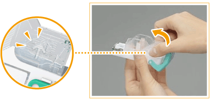 Inseriu la planxa que sobresurt de la part davantera de la caixa de grapes al cartutx de grapes i baixeu la caixa de grapes per col·locar-la al cartutx.