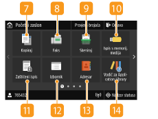 Odaberite da biste provjerili status ispisivanja, pogledali povijest korištenja te da biste pogledali mrežne postavke, npr. IP adresu uređaja. Možete i provjeriti status uređaja, kao što su preostale količine papira i tonera te je li došlo do pogrešaka. Zaslon <Nadzor statusa>