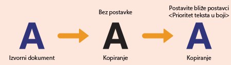 Ako crni i tamniji tekstovi na kopiji nisu zadovoljavajući, ovom prilagodbom poboljšajte reprodukciju boja.