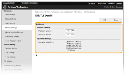 Razmjenu podataka šifriranu TLS-om možete omogućiti ili onemogućiti na izborniku <Izbornik> na zaslonu Početni zaslon. <Udaljeni UI>