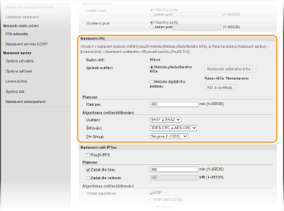 Použití ovládacího paneluPomocí možnosti <Nabídka> na obrazovce Domů také můžete povolit nebo zakázat komunikaci IPSec. <Použít IPSec>