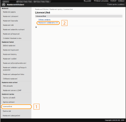 Pomocí možnosti <Nabídka> na obrazovce Domů také můžete povolit nebo zakázat komunikaci šifrovanou pomocí protokolu TLS. <Vzdálené UR>