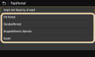 Hvis det ilagte papirformat ikke vises, skal du vælge fanen <Andre formater>.