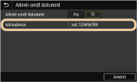 Når du ikke bruger funktionen til arkivering af afsendte dokumenter, skal du vælge <Fra>.