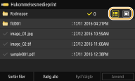 Når du vælger <Dato/tid (Stigende)> eller <Dato/tid (Faldende)>, sorteres filerne ud fra datoer og tidspunkter for ændring af filerne.
