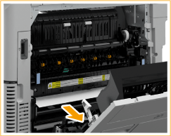 Hvis du ikke kan fjerne papiret via oversiden af fikseringssamlingen, skal du forsigtigt trække det ud via bunden af samlingen.