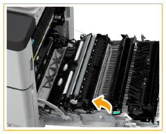 Hvis papir sidder fastklemt i det øverste område i dupleksenheden, skal du trække forsigtigt i det i pilens retning.