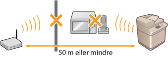 Er der forhindringer som f.eks. mure mellem maskinen og den trådløse router?