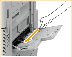 Trek het uitschuifblad naar buiten wanneer u een groot formaat papier wilt plaatsen.
