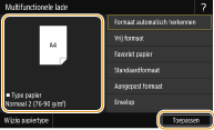 Het scherm voor het opgeven van het papierformaat en -type wordt weergegeven wanneer het papier helemaal is ingevoerd.