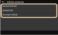 Als u wilt afdrukken op normaal papier met de functie Superfijn, voert u eerst de correctie uit met <Standaard (Normaal)>*1 en vervolgens met <Voor printer 1200 dpi>*1.
