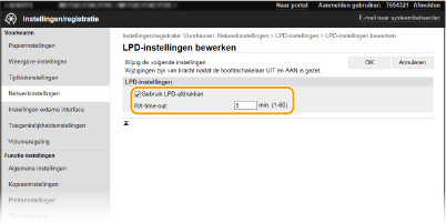Schakel dit selectievakje in om af te drukken via RAW. Wanneer u niet afdrukt via RAW, schakelt u het selectievakje uit. [RX-time-out]