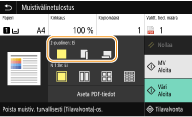 <2-puolinen tulostus> ei ehkä ole käytettävissä joidenkin paperikokojen tai -tyyppien kanssa. Käytettävissä oleva paperi