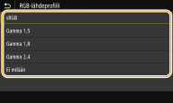 Tämän kohteen asetus ei ole käytettävissä, kun <RGB-lähdeprofiili>-asetukseksi on valittu <Ei mitään>.
