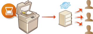 Jotta voit lähettää skannattuja asiakirjoja sähköpostilla tai I-faksilla tai tallentaa niitä jaettuun kansioon tai FTP-palvelimelle suoraan laitteesta, verkkoasetukset on määritettävä. Tee tarvittavat määritykset tarpeidesi ja verkkoympäristön mukaan.