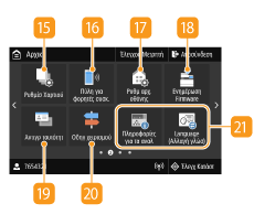 Εμφανίζουν τις αγαπημένες ρυθμίσεις που έχετε καταχωρήσει για τις λειτουργίες αντιγραφής, φαξ και σάρωσης. Προσθήκη πλήκτρων στην οθόνη Αρχική