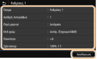 Για να μετονομάσετε τη ρύθμιση, επιλέξτε <Όνομα>. Σχετικά με τον τρόπο εισαγωγής κειμένου, ανατρέξτε στην ενότητα Εισαγωγή κειμένου.