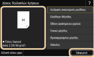 Σημειώστε ότι οι ενδείξεις μεγέθους χαρτιού μπορεί να περιλαμβάνουν μεγέθη χαρτιού που δεν είναι διαθέσιμα στο μηχάνημα. Για πληροφορίες σχετικά με τα διαθέσιμα μεγέθη χαρτιού, ανατρέξτε στην ενότητα