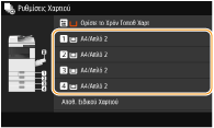 Αν καταχωρήσετε το μέγεθος του χαρτιού που χρησιμοποιείτε συχνά στα πλήκτρα <S1> έως <S3>, μπορείτε να τα εμφανίζετε με το πάτημα ενός πλήκτρου. Καταχώριση χαρτιού ειδικού μεγέθους