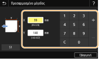 Επιλέξτε <X> ή <Y> και εισαγάγετε το μήκος κάθε πλευράς, χρησιμοποιώντας τα αριθμητικά πλήκτρα.