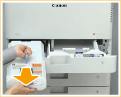 Τοποθετήστε το δοχείο υπολειμμάτων γραφίτη με το λογότυπο της Canon πάνω στο δοχείο στο πίσω μέρος της συσκευής και σπρώξτε το προς τα μέσα για να τοποθετηθεί σωστά.