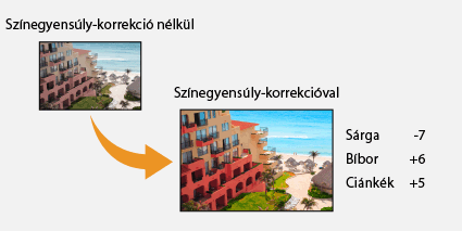 Beállíthatja a sárga, bíbor, ciánkék vagy fekete szín erősségét.