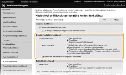 [Hitelesítési beállítások küldési funkcióhoz] lehetőséget.