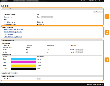 Megadhatja, hogy a nyomtatás és faxküldést az AirPrint-tel szeretné-e végezni. A gyári alapbeállítás: <Be>.