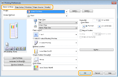 Válassza ki a nyomtató illesztőprogramját, majd kattintson a [Preferences] vagy a [Properties] gombra.