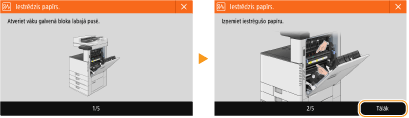 Dažos gadījumos, kad rodas kļūda, tiek sniegti norādījumi, kā rīkoties. Izpildiet ekrānā redzamos norādījumus, lai novērstu problēmu. Tālāk kā piemērs ir parādīts ekrāns, kas ir redzams, ja iestrēgst papīrs.