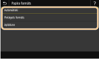 Jūs varat izmantot pogas <S1>–<S3>, lai reģistrētu bieži izmantotu papīra formātu un to izsauktu ar vienu pieskārienu. Pielāgota papīra formāta reģistrēšana