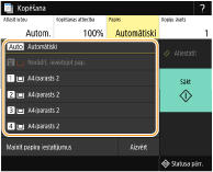 Automātiski izvēlas papīru atkarībā no ievietotā papīra.