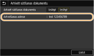 Norādiet nosūtīto dokumentu glabāšanas vietu. Adrešu grāmatā atzīmējiet izvēles rūtiņu vietai, kas jālieto kā glabāšanas vieta, un izvēlieties <Lietot>.