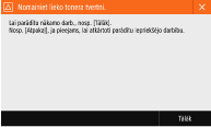 Liekā tonera tvertne ir pilna un nav iespējams veikt drukāšanu. Lai nomainītu liekā tonera tvertni, izpildiet ekrānā redzamos norādījumus.