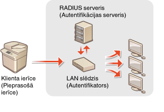 IEEE 802.1X ir standarts un mehānisms, kas paredzēts nesankcionētas piekļuves tīklam bloķēšanai, un tas kopīgi pārvalda lietotāju autentifikācijas informāciju. Ja ierīce mēģina izveidot savienojumu ar 802.1X tīklu, ierīcei jāveic lietotāja autentifikācija, lai pārliecinātos, vai savienojumu veic autorizēts lietotājs. Autentifikācijas informācija tiek nosūtīta uz RADIUS serveri, kur tā tiek pārbaudīta. Šis serveris atļauj vai aizliedz sakarus ar tīklu atkarībā no autentifikācijas rezultāta. Ja autentifikācija neizdodas, LAN slēdzis (jeb piekļuves punkts) bloķē piekļuvi no tīkla ārpuses. Iekārta var izveidot savienojumu ar 802.1X tīklu kā klienta ierīce. IEEE 802.1X autentifikācijas iestatījumu konfigurēšana