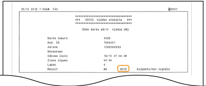 Saņemot faksa ziņojumu, šī iekārta dzēš 1000. lapas un nākamo lapu datus un vai nu drukā pirmās 999 lapas, vai patur tās atmiņā. Lūdziet sūtītājam vēlreiz nosūtīt dokumentu, sākot ar 1000. lapu.